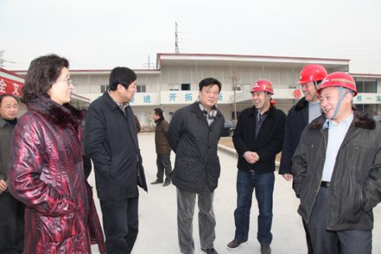 趙亞峰副主任(中間)一行在客運(yùn)站項(xiàng)目工地與施工單位代表親切交談