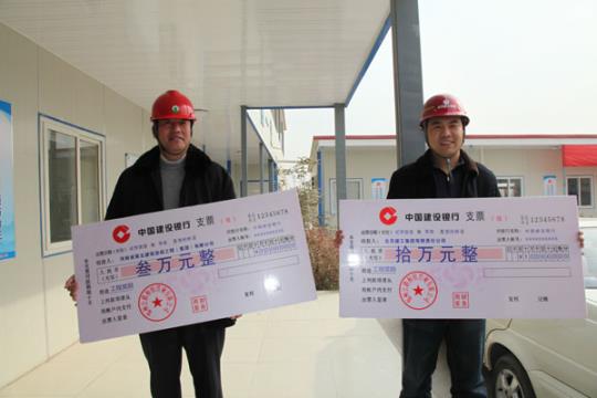 施工單位代表手捧節(jié)點(diǎn)獎(jiǎng)勵(lì)金