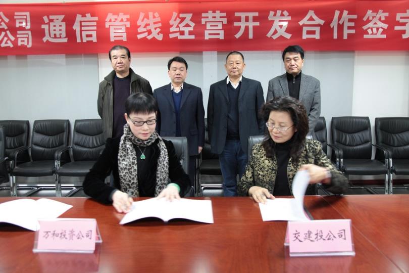 3月22日,交建投公司和鄭州萬(wàn)和投資有限公司《航海路西延至鄭少連接線通信管道經(jīng)營(yíng)開(kāi)發(fā)合作協(xié)議》簽字儀式在市交運(yùn)委四樓會(huì)議室舉行。交建投公司董事長(zhǎng)張慧云、總經(jīng)理趙少偉、黨委副書記黃守平、總經(jīng)濟(jì)師李建豐、萬(wàn)和投資公司董事長(zhǎng)張華,總經(jīng)理張敏等參加了簽字儀式。