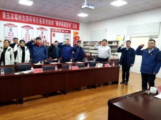 來(lái)自鄭州交投東四環(huán)項(xiàng)目公司黨支部、鐵建中原東四環(huán)項(xiàng)目黨支部、中交一公局七公司東四環(huán)項(xiàng)目黨支部三個(gè)黨支部的20余名黨員代表參加了活動(dòng)。