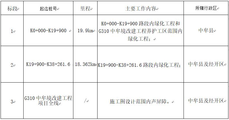 G310中牟境改建工程項目起點位于中牟縣小李莊現(xiàn)狀G310中牟、開封交界處(對應原路樁號:K552+333),接G310開封境改建項目終點。路線全長38.262公里。