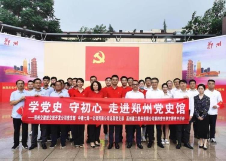 為了深入推進(jìn)黨史學(xué)習(xí)教育,用飽滿(mǎn)的熱情慶祝中國(guó)共產(chǎn)黨成立100周年,7月19日下午,鄭州交建投交投開(kāi)發(fā)公司黨支部聯(lián)合中建七局一公司河南公司總部黨支部、高創(chuàng)建工股份有限公司第四黨支部到鄭州市黨史紀(jì)念館,開(kāi)展“聯(lián)學(xué)共建 學(xué)黨史 悟思想 共成長(zhǎng)”主題黨日活動(dòng)。