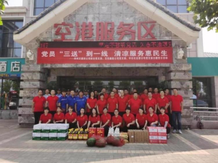 在建黨100周年來臨之際,為進一步貫徹落實“學(xué)黨史、悟思想、辦實事、開新局”的要求,把黨組織的關(guān)懷送到職工群眾百姓心間,6月28日上午,鄭州交建投公司綜合黨支部、交投鑫能黨支部與交投中石化黨支部聯(lián)合在G107空港服務(wù)區(qū)舉行了“黨員三送到一線,清涼服務(wù)惠民生”活動啟動儀式。公司黨委委員、副總經(jīng)理李雋鴻、柳林,綜合黨支部、交投鑫能公司黨支部、中石化合資公司黨支部全體黨員及服務(wù)區(qū)運營、物業(yè)單位和加油站員工代表參加了活動。