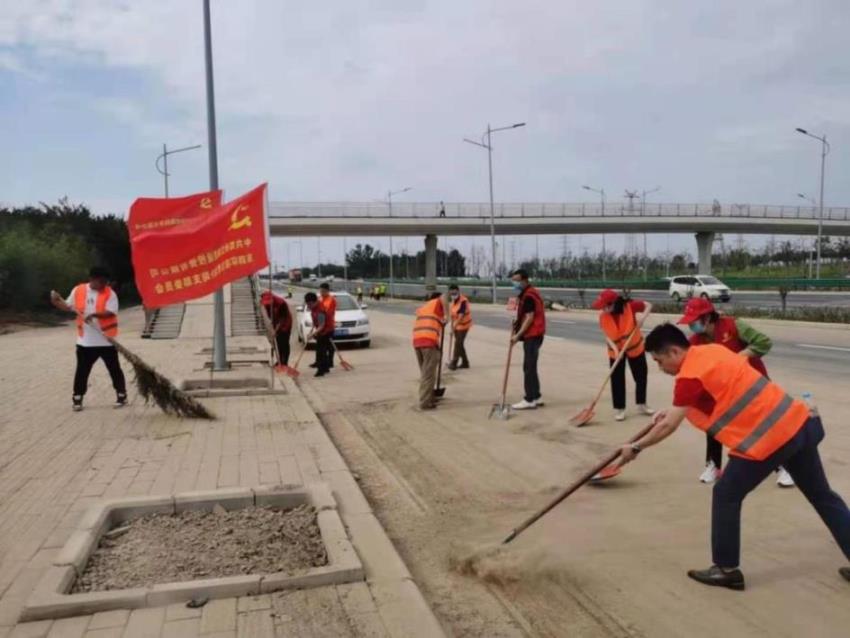 面對(duì)災(zāi)情,交投東四環(huán)公司“黨員突擊隊(duì)”第一時(shí)間做出反應(yīng),帶動(dòng)支部全體黨員,聯(lián)合交投停車黨支部、國控基金公司、施工單位近50名黨員群眾迅速集結(jié), 扛上黨旗,帶上鐵鏟,開始了清淤清掃行動(dòng)。
