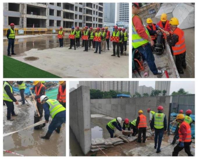 演練模擬項目駐地近日連續(xù)降雨,水勢猛漲,大量雨水向車庫內(nèi)聚集,將導(dǎo)致建筑基礎(chǔ)被浸泡,情況非常緊急。接險情報告后,按照應(yīng)急預(yù)案迅速集結(jié)防汛應(yīng)急隊伍開展搶險工作。救援隊立即對車庫口進行加高加固,同時做好車庫降排水工作,經(jīng)過一個多小時的連續(xù)奮戰(zhàn),地庫雨水被排出,險情得到控制。演練結(jié)束后,項目負(fù)責(zé)人對此次應(yīng)急演練情況進行總結(jié)點評。