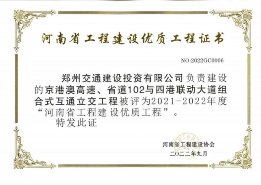 近日,由鄭州交建投公司投資建設(shè)的京港澳高速、省道102與四港聯(lián)動大道組合式互通立交工程榮獲2021-2022年河南省優(yōu)質(zhì)工程!該工程于2021年7月8日正式通車,將京港澳高速原“薛店站”更名為“航空港區(qū)站”。項目秉持“綠色、環(huán)保、創(chuàng)新”的設(shè)計理念,設(shè)計方案為渦輪式+單喇叭+T型組合互通式立交。