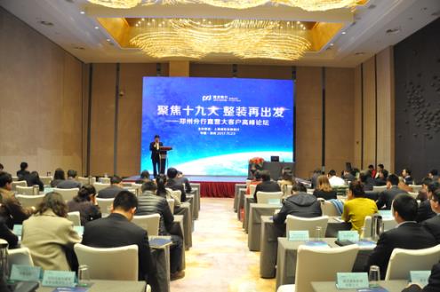 11月23日上午,鄭州交建投公司受邀參加上海浦東發(fā)展銀行鄭州分行舉辦的“聚焦十九大 整裝再出發(fā)”直營(yíng)大客戶高峰論壇。會(huì)議特邀上海交通大學(xué)顧建光教授以及80余位大客戶代表參加,共同探討十九大經(jīng)濟(jì)形勢(shì)熱點(diǎn),展望未來(lái)發(fā)展機(jī)遇與方向。