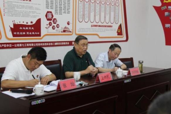 為迎接中國共產(chǎn)黨建黨97周年,深入貫徹學(xué)習(xí)十九大精神,6月29日下午,鄭州交建投東四環(huán)項(xiàng)目管理有限公司黨支部、鐵建中原工程有限公司東四環(huán)項(xiàng)目黨支部、中交一公局第七工程有限公司東四環(huán)項(xiàng)目黨支部聯(lián)合召開第一次基層黨組織“聯(lián)學(xué)聯(lián)建聯(lián)創(chuàng)”會(huì)議,會(huì)議宣布“聯(lián)學(xué)聯(lián)建聯(lián)創(chuàng)”活動(dòng)正式啟動(dòng),并邀請?jiān)形y(tǒng)戰(zhàn)部常務(wù)副部長王杰民到會(huì)宣講黨課。