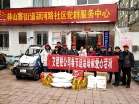 在2019年新春佳節(jié)即將來臨之際,為扎實推進(jìn)公司精神文明建設(shè)工作,開展好“我們的節(jié)日”主題活動,讓社區(qū)困難群眾度過一個舒心、溫暖的春節(jié),1月31日下午,鄭州交建投公司黨委負(fù)責(zé)人、監(jiān)事會主席王加喜,黨委委員、副總經(jīng)理柳林帶領(lǐng)機(jī)關(guān)黨支部黨員和部分志愿者到結(jié)對幫扶社區(qū)—林山寨辦事處潁河路社區(qū)開展向困難群眾“送溫暖、獻(xiàn)愛心”活動。在社區(qū)服務(wù)中心,公司代表為困難群眾送去了米、面、油和水果等生活必須品,并帶去了新春的祝福。此次活動的開展,既為困難群眾提供了物質(zhì)上的幫助,又給他們帶來了情感上的溫暖和精神上的鼓勵,切實讓他們感受到黨和社會的真情關(guān)懷。