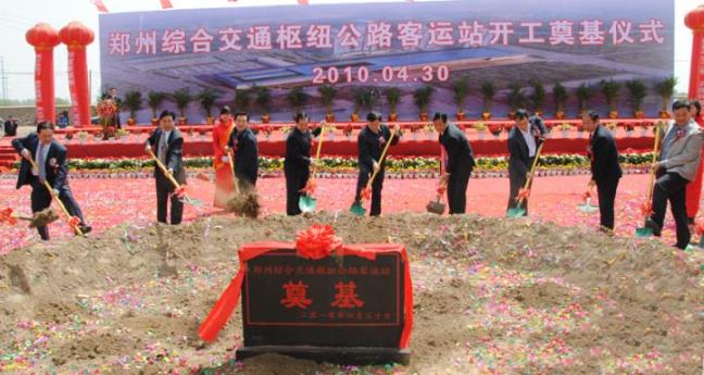 2010年4月30日,鄭東新區(qū)國道107輔道與七里河路交匯處,彩旗飄揚(yáng),禮炮聲聲,鼓樂陣陣,河南省、鄭州市重點(diǎn)項(xiàng)目——鄭州綜合交通樞紐公路客運(yùn)站項(xiàng)目奠基儀式在這里隆重舉行。