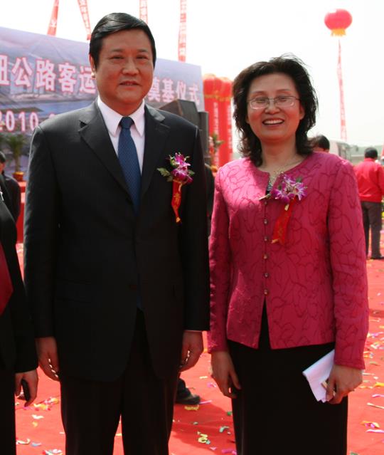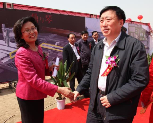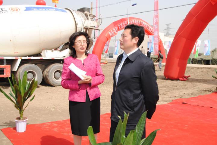 交建投董事長張慧云在奠基現(xiàn)場迎接河南省副省長張大衛(wèi)的到來