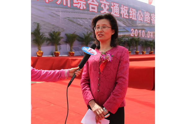 鄭州綜合交通樞紐公路客運站開工典禮上交建投公司董事長張慧云接受媒體采訪